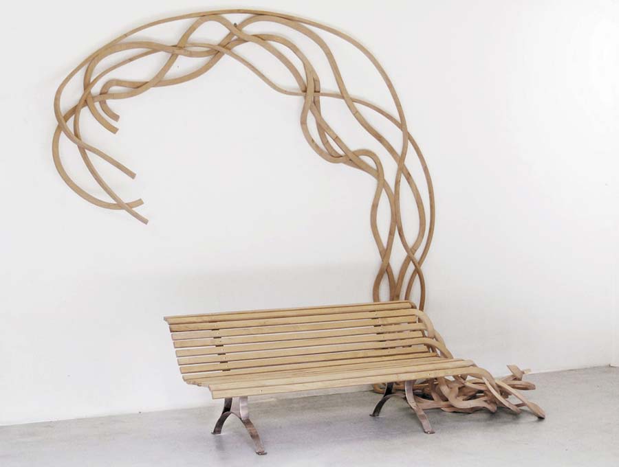 Avec Pablo Reinoso, les objets prennent vie pour poursuivre leur chemin initial de bois, d’arbre, de végétal… Vous allez découvrir des “Bancs Spaghetti”, qui suivent avant tout dans une logique végétale. Une bonne partie des lattes des bancs envahissent le sol, les murs, à la manière des lianes… ! Ces bancs, après avoir accompli leur métier de mobilier, redeviennent des branches qui poussent et grimpent dans tous les sens… Partons à la découverte d’un homme qui “re-visite” l’objet quotidien avec humour et légèreté !