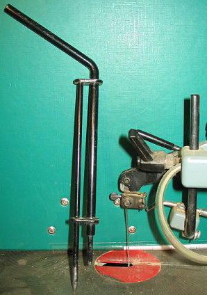 .... jusqu'à ce que je trouve l'utilité d'une drôle de tige en fer double d'une 15zaine de cm fixée à l'arrière du bâti. C'est cette tige un peu spéciale qui sert au blocage/dévissage du prisme sous la table.