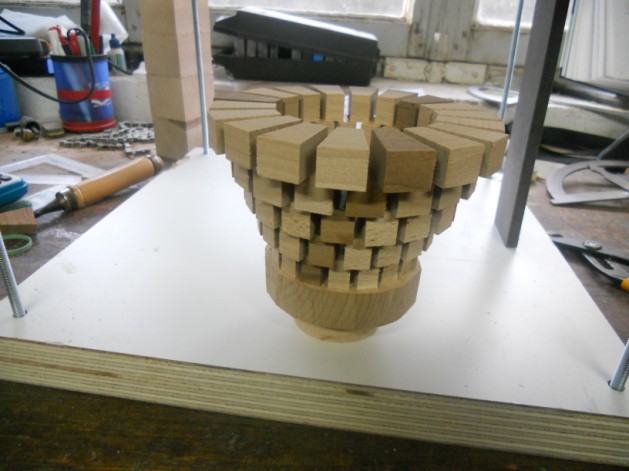 2)Commencer a coller les morceaux de bois sur un planche bien seche
