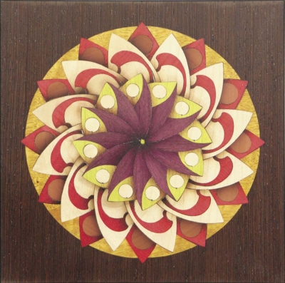 Dans le dernier numéro, je vous présentais un mandala, dont j’avais réalisé une fraction du motif répété six fois. Je l’avais exécuté dans la méthode élément par élément, en découpant chaque pièce en six exemplaires.